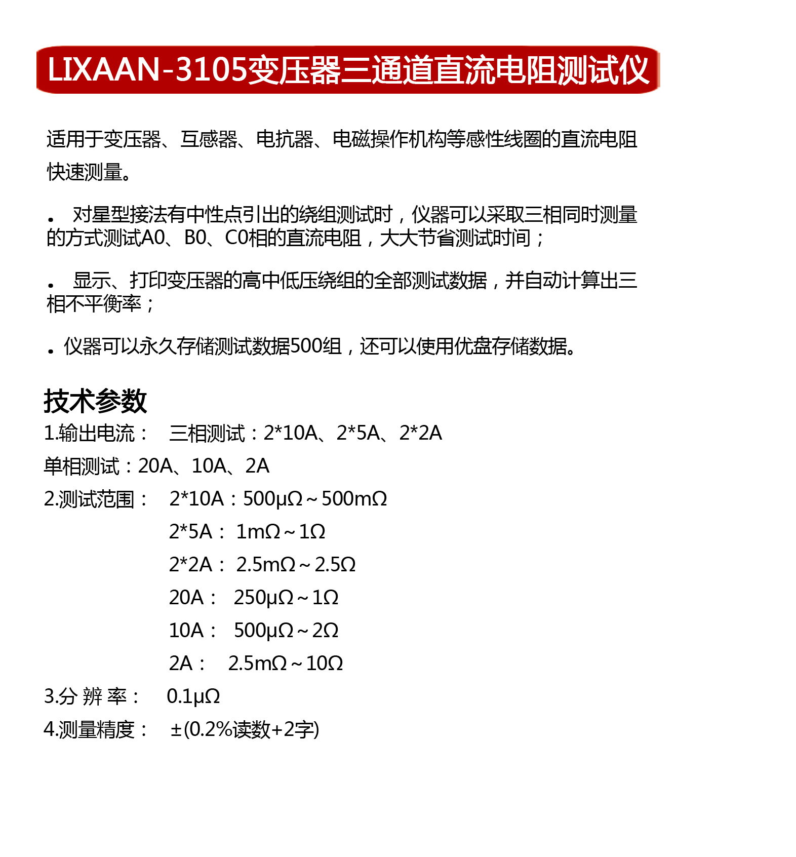 LIXAAN-3105 变压器三通道直流电阻测试仪