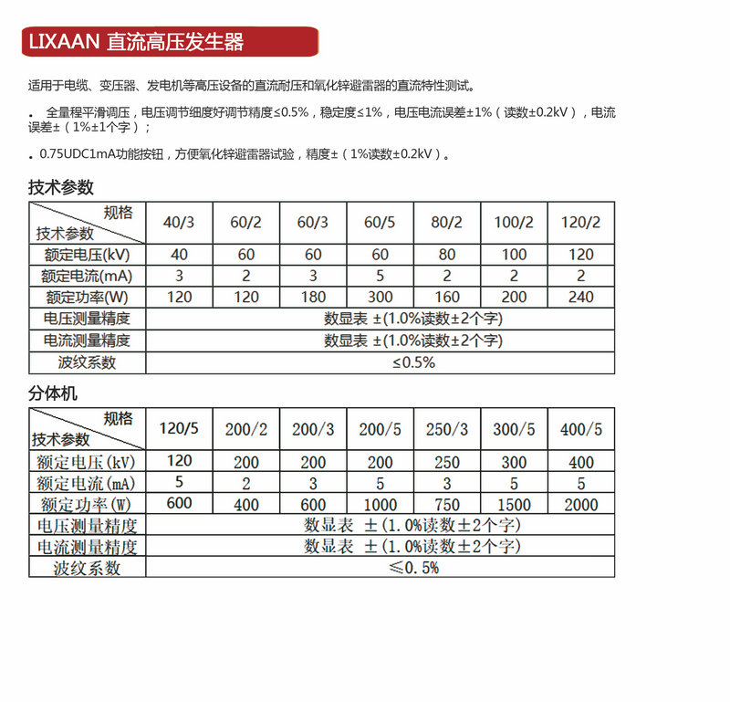 LIXAAN一体化直流高压发生器