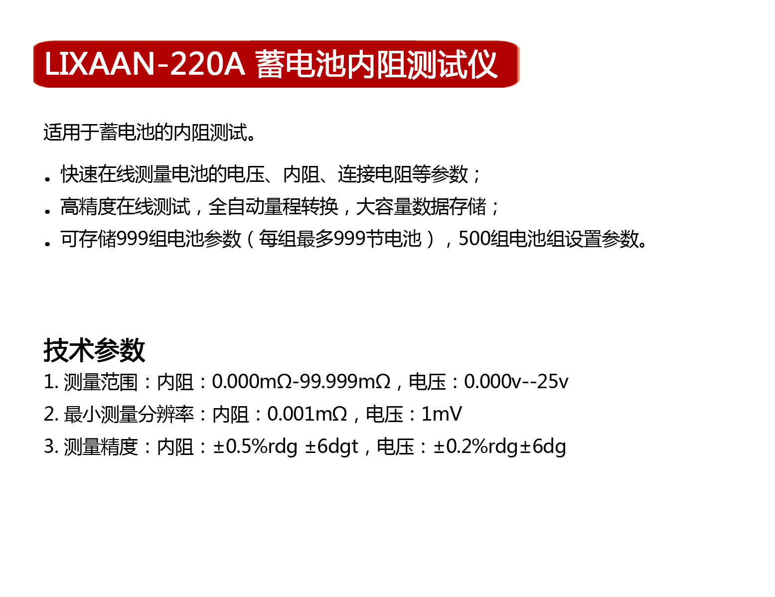 LIXAAN-220A蓄电池内阻测试仪