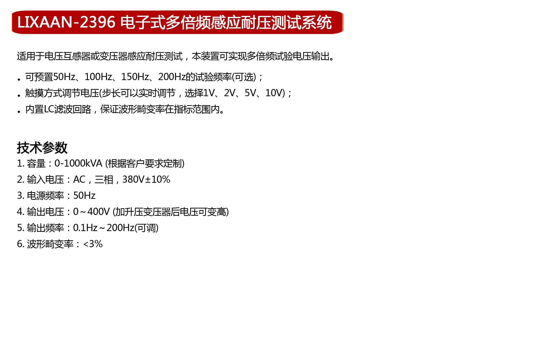 LIXAAN-2396 电子式多倍频感应耐压测试系统