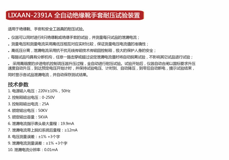 LIXAAN-2391A全自动绝缘靴手套耐压测试装置