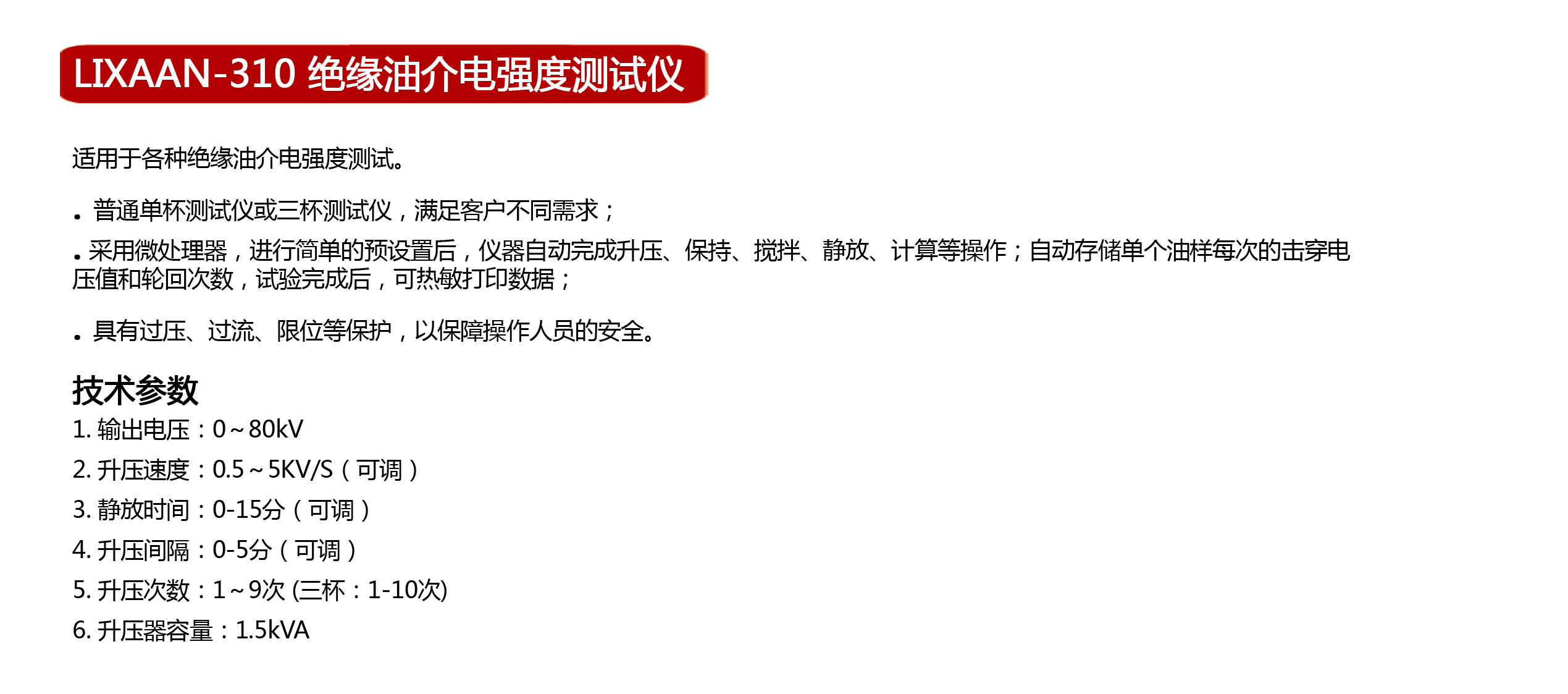 LIXAAN-310 绝缘油介电强度测试仪(单杯)