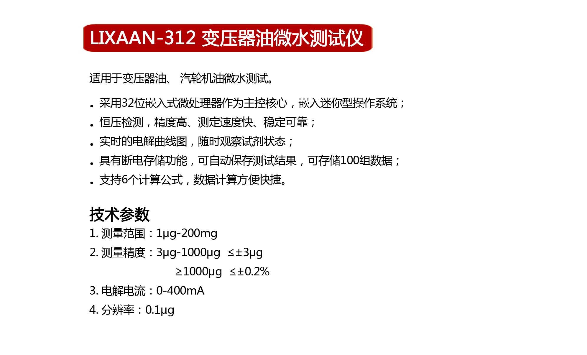 LIXAAN-312变压器油微水测试仪